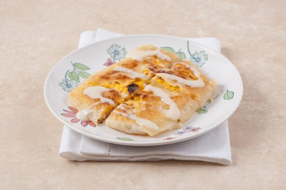 Пикантный омлет с перцем, сыром грюйер и луковым соусом