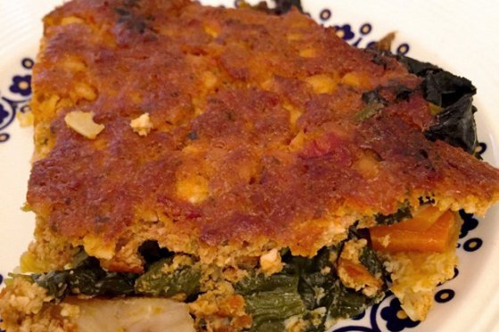 Овощная запеканка с творогом и томатным соусом