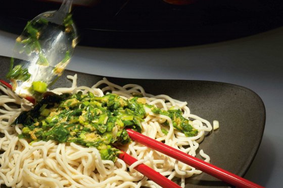 Пшеничная лапша с соусом из зеленого лука и имбиря
