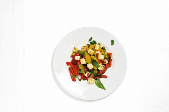 Салат из перцев и жареного халуми