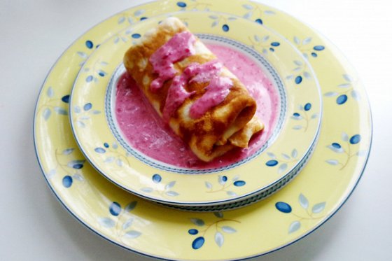 Блины на минеральной воде с малиново-сметанным соусом