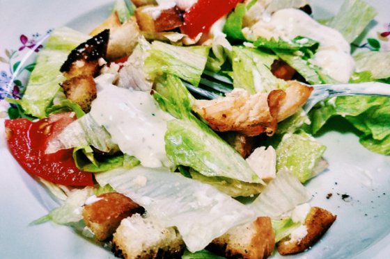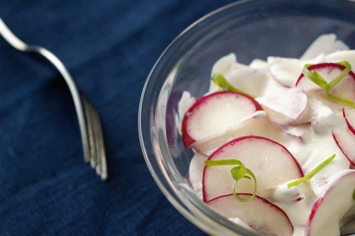 Салат из красной фасоли с творожным сыром, красным луком и сезонным салатом
