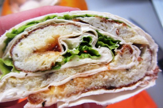 Omelet in pita bread with caviar and cheese