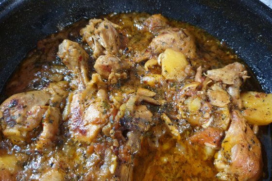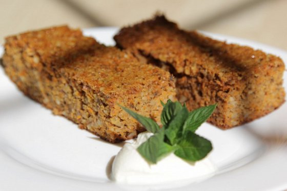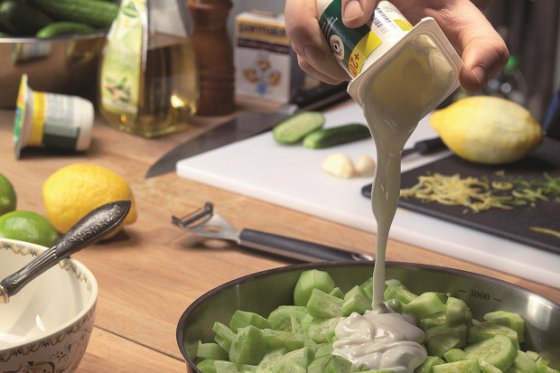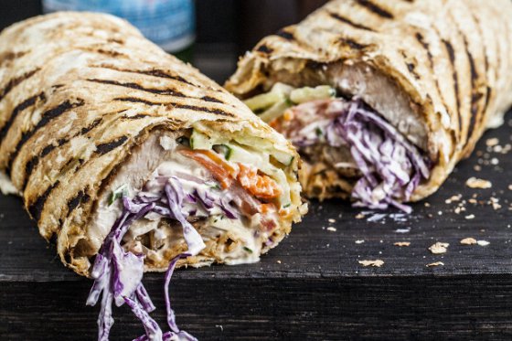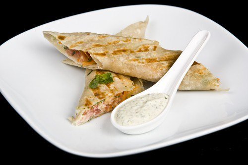 Chicken with yogurt sauce, sesame seeds, lemon and garlic