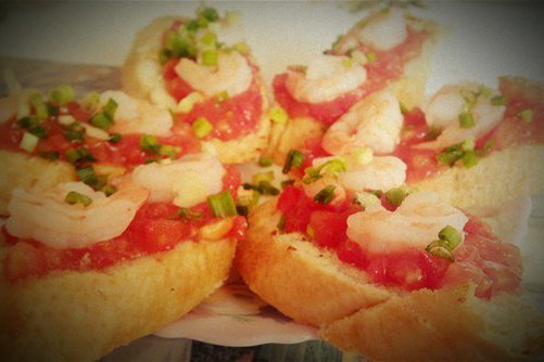 Bruschetta with shrimp and avocado