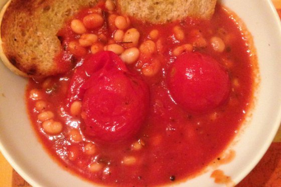 Bean soup, tomatoes and sage toast