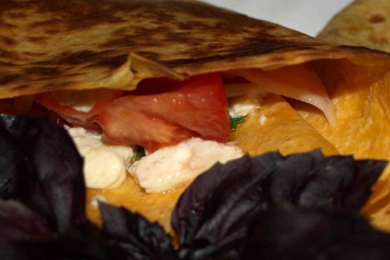 Cheese tortilla with cheese, tomatoes and bacon